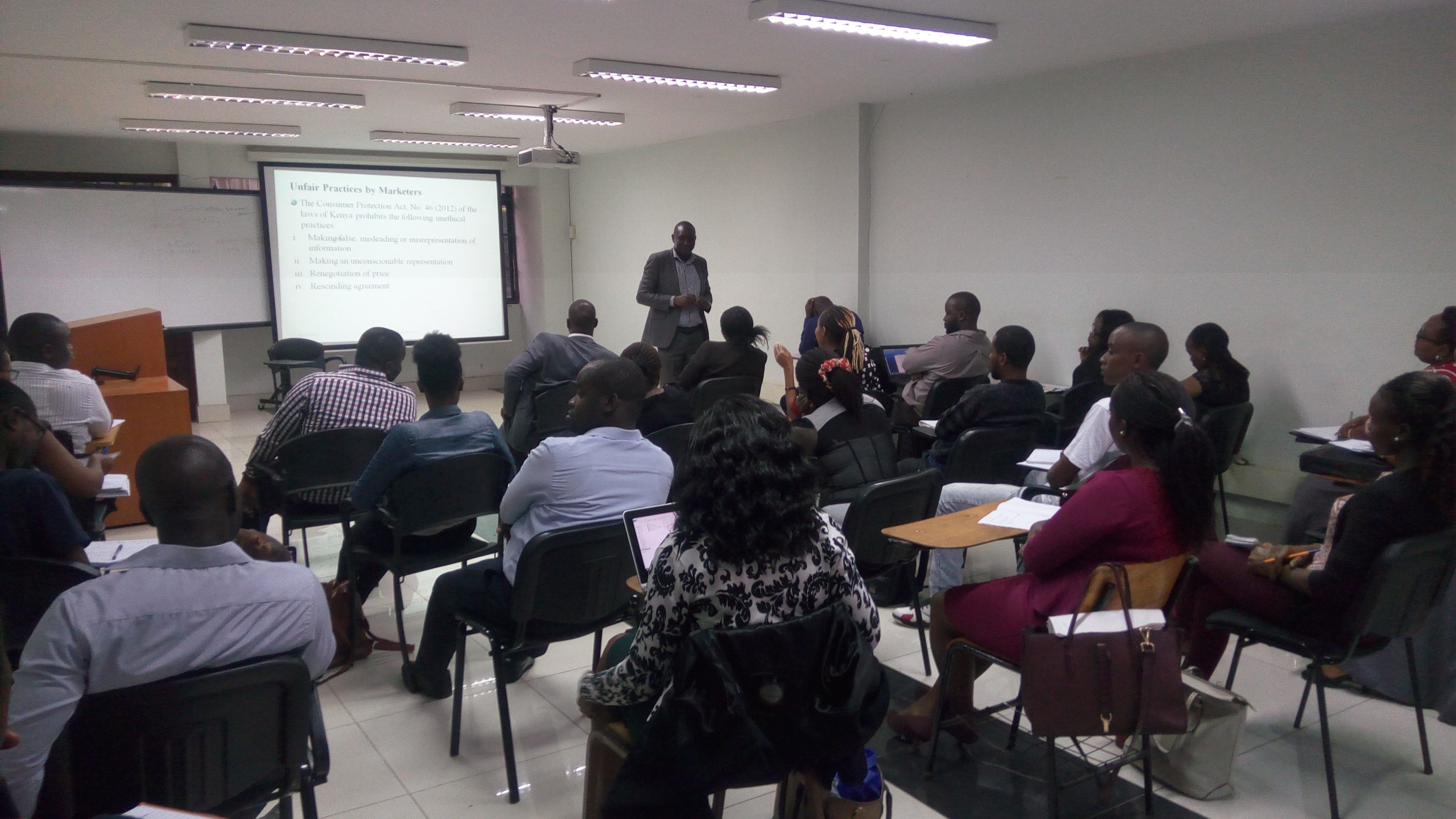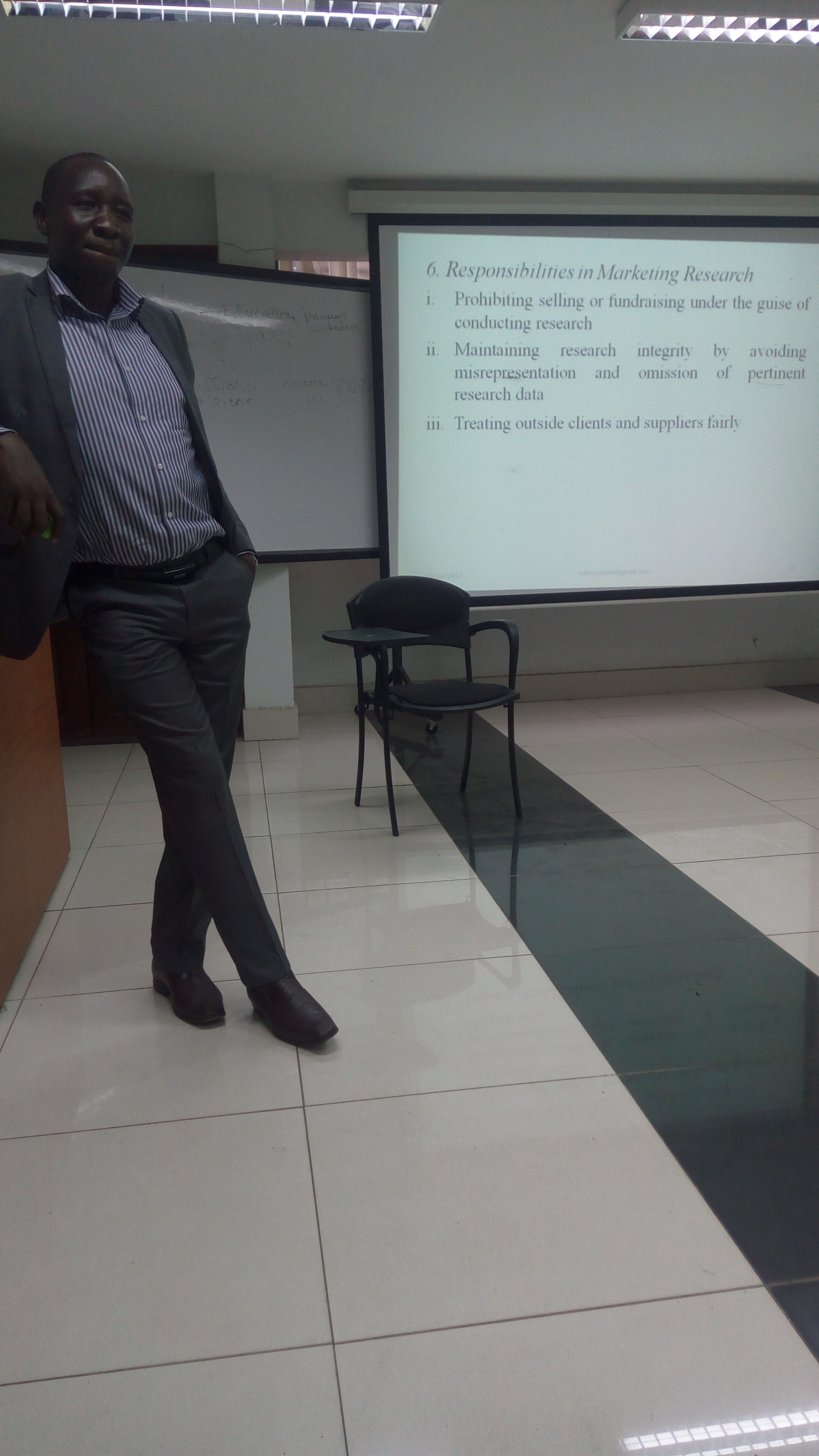 I have had a couple of months’ worth of classes now and truthfully my best class so far is on Marketing Ethics and Governance taught by one Dr. Joseph Owino, every Monday evening, worth every penny this lecture. What’s interesting is his ability to let his students think critically by providing real life situations/scenarios by way of case studies and asking pertinent questions that make us think because the aspect of ethics is not always a given for all. One may choose to be ethical or not in every aspect of life. The other subjects are interesting too thing is I need to invest more time in doing more out of class research so as to reach a suitable level of understanding.