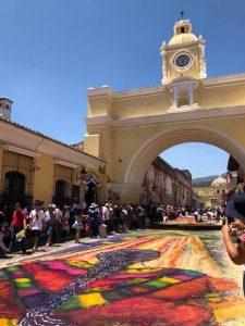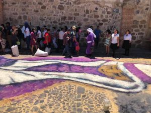 Proof of them I would like to talk about the incredible “masterpiece” carpet that students elaborated in Antigua Guatemala. Just looking at the colors, textures, and the meaning they sought to capture was impressive, with so many visual elements.