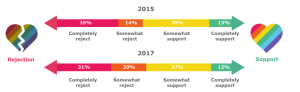 To understand how our 2015 study has been used to create impact, we further explored RoCK’s program implementation, specifically among straight people. The effect of the program, which is a result of the research, is demonstrated through case studies and through the 2017 survey results (was comprised of 1,683 straight people across 11 provinces and the capital city in both urban and rural areas).